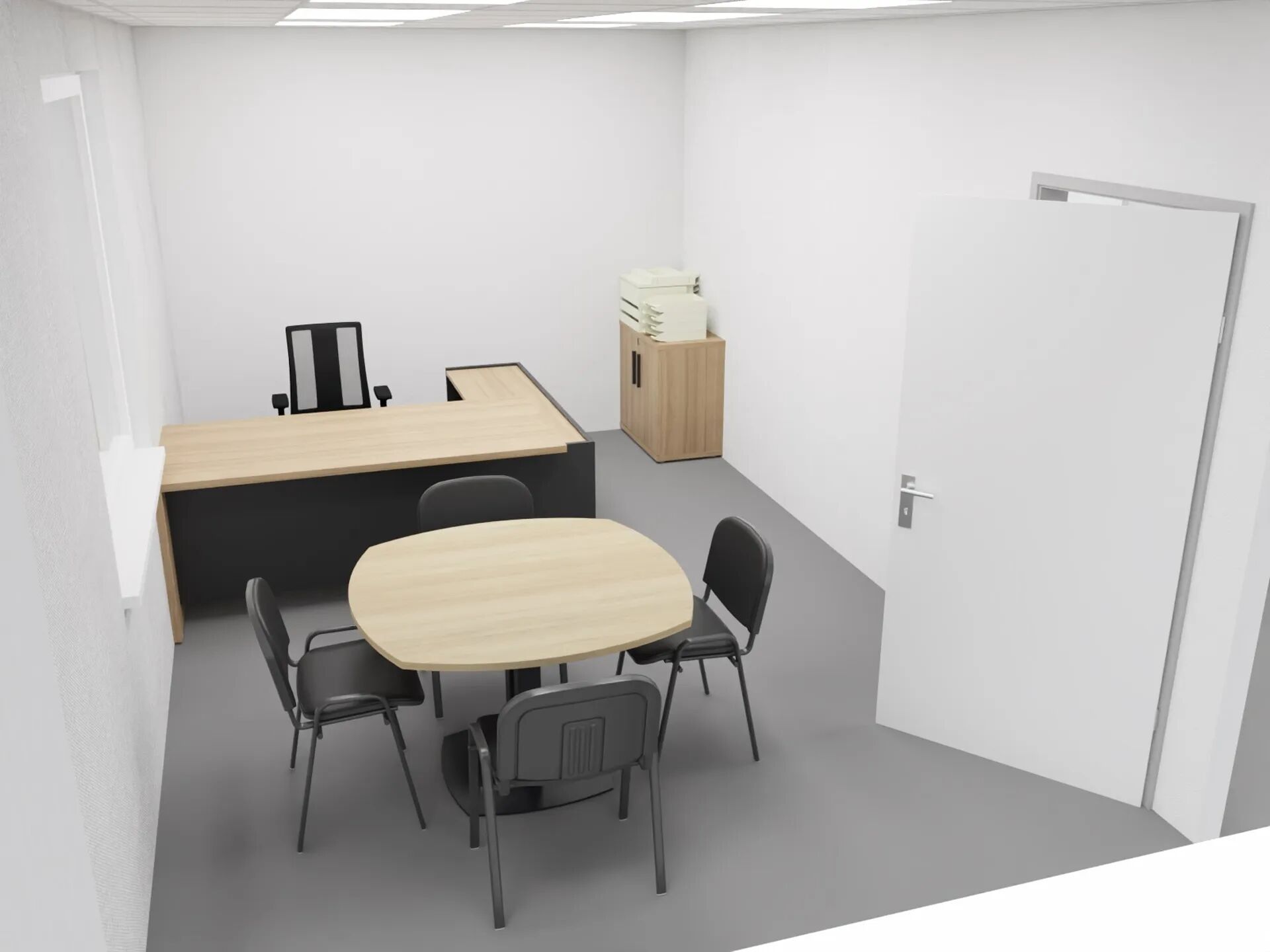 3. Bureau et retour manager avec armoire de rangement et table de réunion 4 personnes